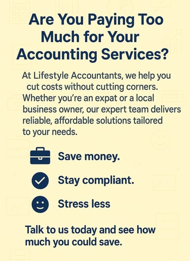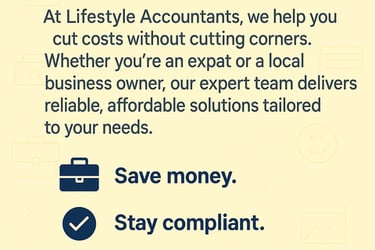 At Lifestyle Accountants, we help you cut costs without cutting corners. Whether you're an expat or a local business owner, our expert team delivers reliable, affordable solutions tailored to your needs.